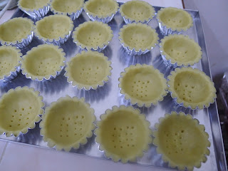 4. Divided the dough to small ball, and press into the tart casing. I think this is the tedious part of making this tart. It took me a whole hour just to do 40 casing. Prick the tart shell with a fork before baking.